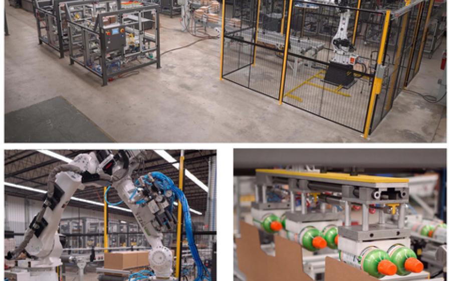 EndFlex announced the completion of a highly customized end-of-line system in an astonishing 20 weeks. Engineered for its client in the personal hygiene market, this fully automated system conveys bottled product into the Traypacker™ modular pick & place cell where it is packed into a tray that is fully formed and sealed by dual Poplok® tray formers. In the final stages, the Boxxer™ all-in-one system forms, packs and seals the loaded trays into cases before conveying them to the Z.Zag™ robotic palletizer where the cases are precisely stacked for shipping.