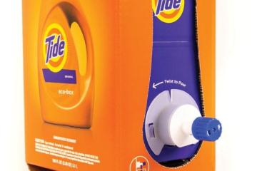 The Tide Eco-Box arrives on a shopper's doorstep in a sealed, shipping-safe cardboard box. Inside the box is a sealed bag of ultra-compacted Tide…