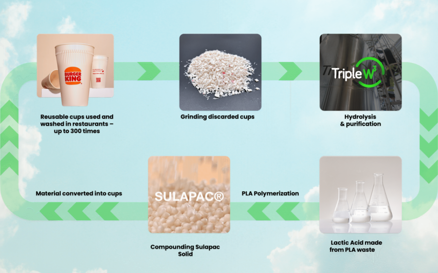 TripleW’s advanced recycling platform brings an additional layer of innovation. In the pilot, used Sulapac Solid cups were: