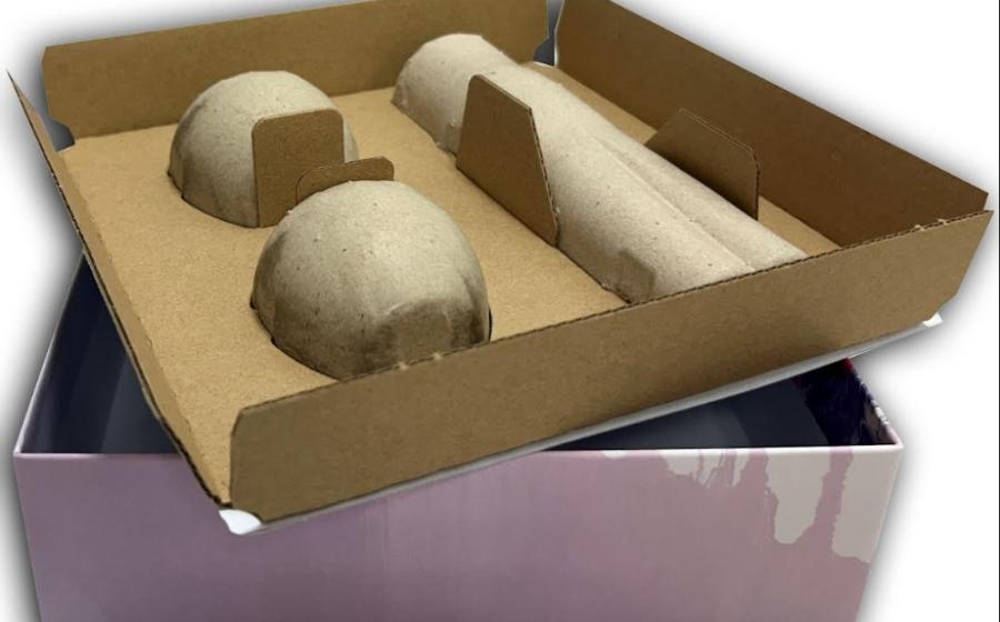 Pusterla’s CALECO is a natural and sustainable material that has full Chain of Custody (FSC) certification and is both recyclable and biodegradable. It can be easily moulded into a variety of shapes to provide safe and secure positioning for products, and its shock-absorbing properties ensure effective protection throughout the supply chain. The material also offers significant storage and transportation savings compared to EPS and foam fitments.